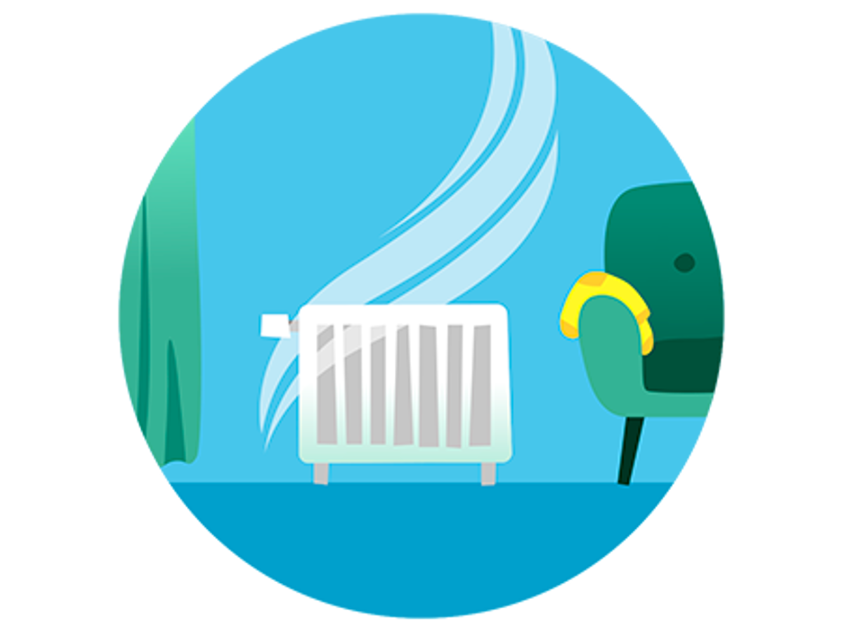 Luften omkring radiatoren skal have frit løb, og termostatens føler må ikke være tildækket. Så sørg for at der er ca. 10 cm mellem sofa og radiator.